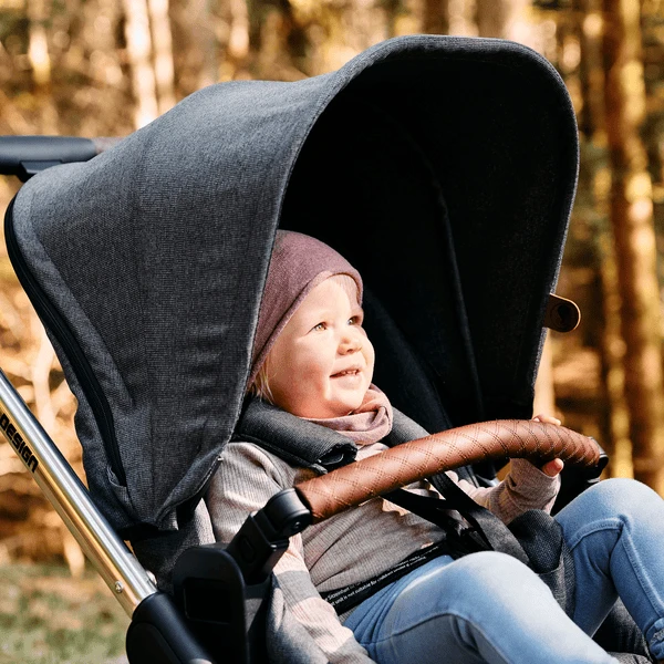 U kunt uw nieuwe kinderwagen gemakkelijk aanpassen aan uw behoeften. U kunt de in hoogte verstelbare kinderwagen met een handomdraai aan elke ouder individueel aanpassen. Slim: de handrem zit direct op het rechter achterwiel. Hierdoor is er geen achteras meer nodig. Dit bespaart gewicht en ruimte en verhoogt het duwcomfort, vooral voor langere moeders of vaders.