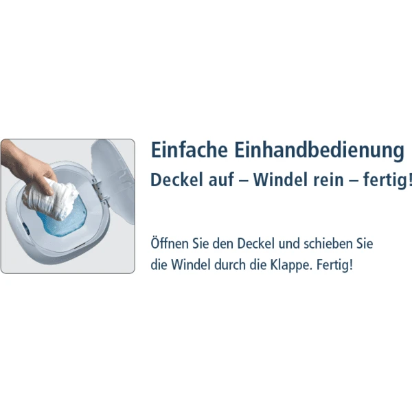 De luiers worden niet afzonderlijk in de folie gedraaid, maar in een stuk buis opgevangen, wat niet alleen de verwerking vergemakkelijkt, maar ook het milieu beschermt, omdat er ca. 5 keer minder folie wordt gebruikt. A Angel care ® Navulcassette geschikt voor ca. 180 luiers*.