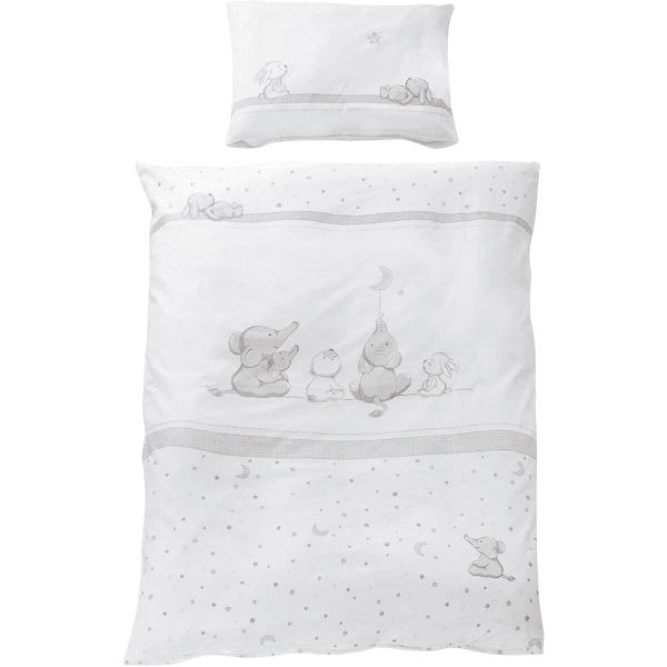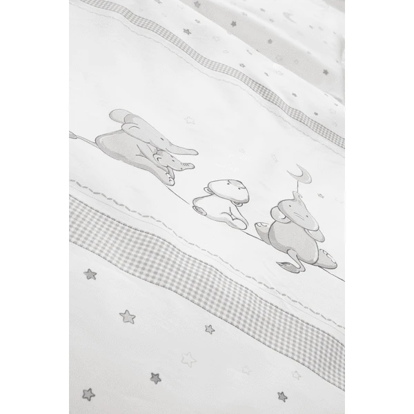 Het omkeerbare beddengoed uit de roba “Sternenzauber” collectie is een echte blikvanger in elke kinderkamer. Met dit beddengoed vertellen konijntjes, beren en olifanten elkaar een verhaaltje voor het slapengaan als ze naar boven kijken in de sterrenhemel.