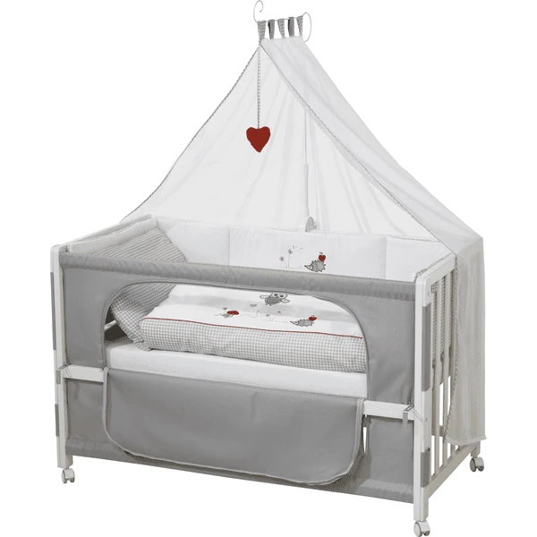 extra bed veilig aan het bed van de ouders bevestigd. Door middel van een rits