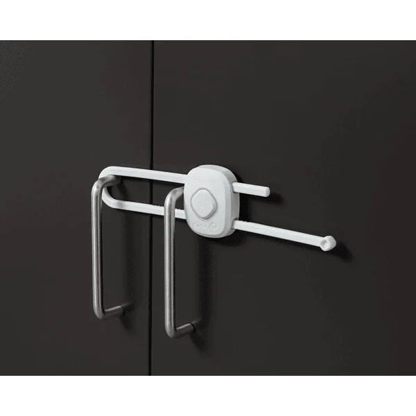 Het geheim om de Safety 1st Secret Button te openen ligt onder de oppervlakte. De grote knop op de voorkant leidt af van de daadwerkelijke openingsknop. De kinderveilige oplossing is eenvoudig te installeren en voorkomt dat kinderen kastdeuren openen. Hij kan zowel bij kasten met grepen als met knoppen worden gebruikt.