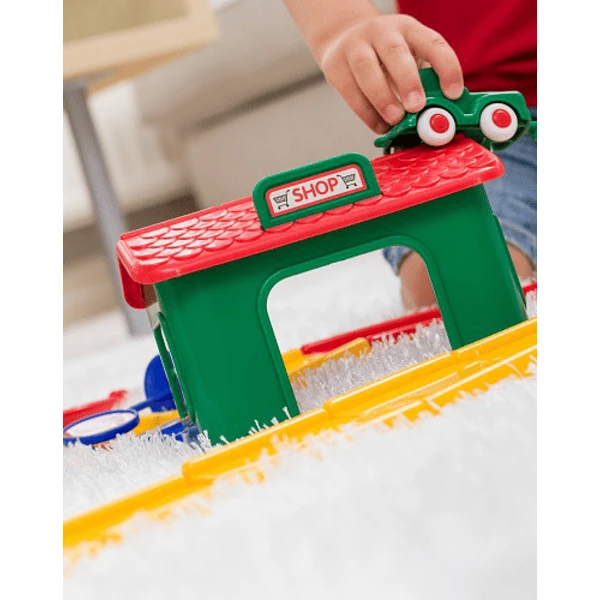 • Rijd door de stad met de zachte en kleurrijke auto’s die perfect zijn voor de kleine handjes van peuters en ga winkelen in de kleine winkeltjes.